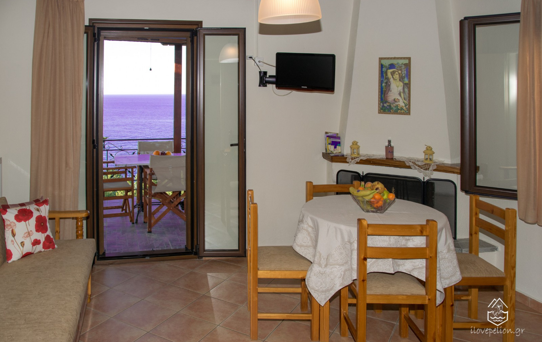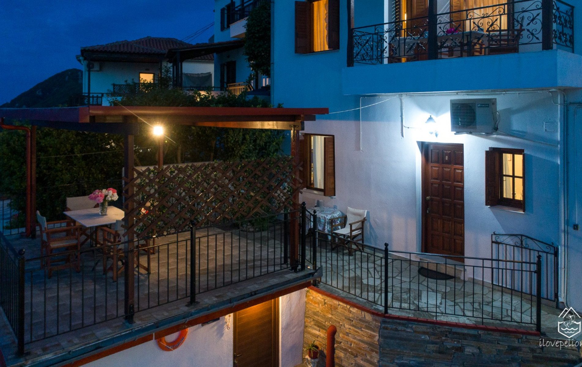 Το συγκρότημα «ΠΑΝΘΕΟΝ» βρίσκεται μόλις 300 μέτρα πάνω από την πανέμορφη παραλία Παπά Νερό, στον Αη-Γιάννη Πηλίου, μέρος ιδανικό για διακοπές, χαλάρωση και ξεκούραση. Αποτελεί ένα μοναδικό συνδυασμό βουνού και θάλασσας, αφού μπροστά στα μάτια του επισκέπτη απλώνεται το «απέραντο γαλάζιο» του Αιγαίου Πελάγους, ενώ προς την παραλία καταλήγουν οι καταπράσινες πλαγιές του κατάφυτου βουνού. Έτσι, ο επισκέπτης έχει την ευκαιρία να επισκεφθεί άλλες παραλίες σε μικρή απόσταση απ’ το συγκρότημα, όπως τη Νταμούχαρη (1χμ), την Πλάκα με τα γαλαζοπράσινα νερά της (1χμ), τους Αγίους Σαράντα (20χμ), τη Φακίστρα και το Μυλοπόταμο (15χμ). Συγχρόνως, μπορεί να απολαύσει το περπάτημα στα γραφικά μονοπάτια του βουνού ανάμεσα σε πλατάνια, καστανιές, οπωροφόρα δέντρα αλλά και το θρόισμα των φύλλων και το κελάηδημα των πουλιών! Στο Πήλιο των Κενταύρων, τον επί της γης παράδεισο, ο επισκέπτης μπορεί να απολαύσει γαλήνη στο πνεύμα και στην ψυχή.