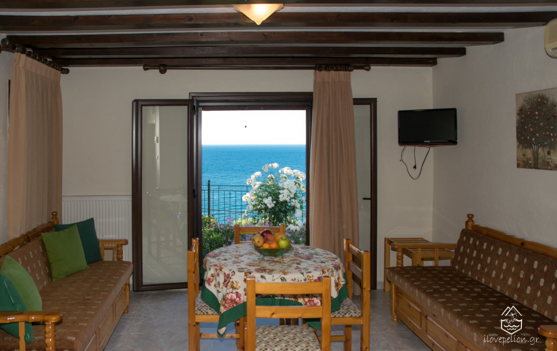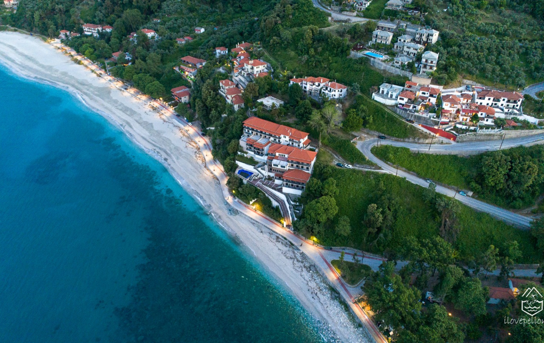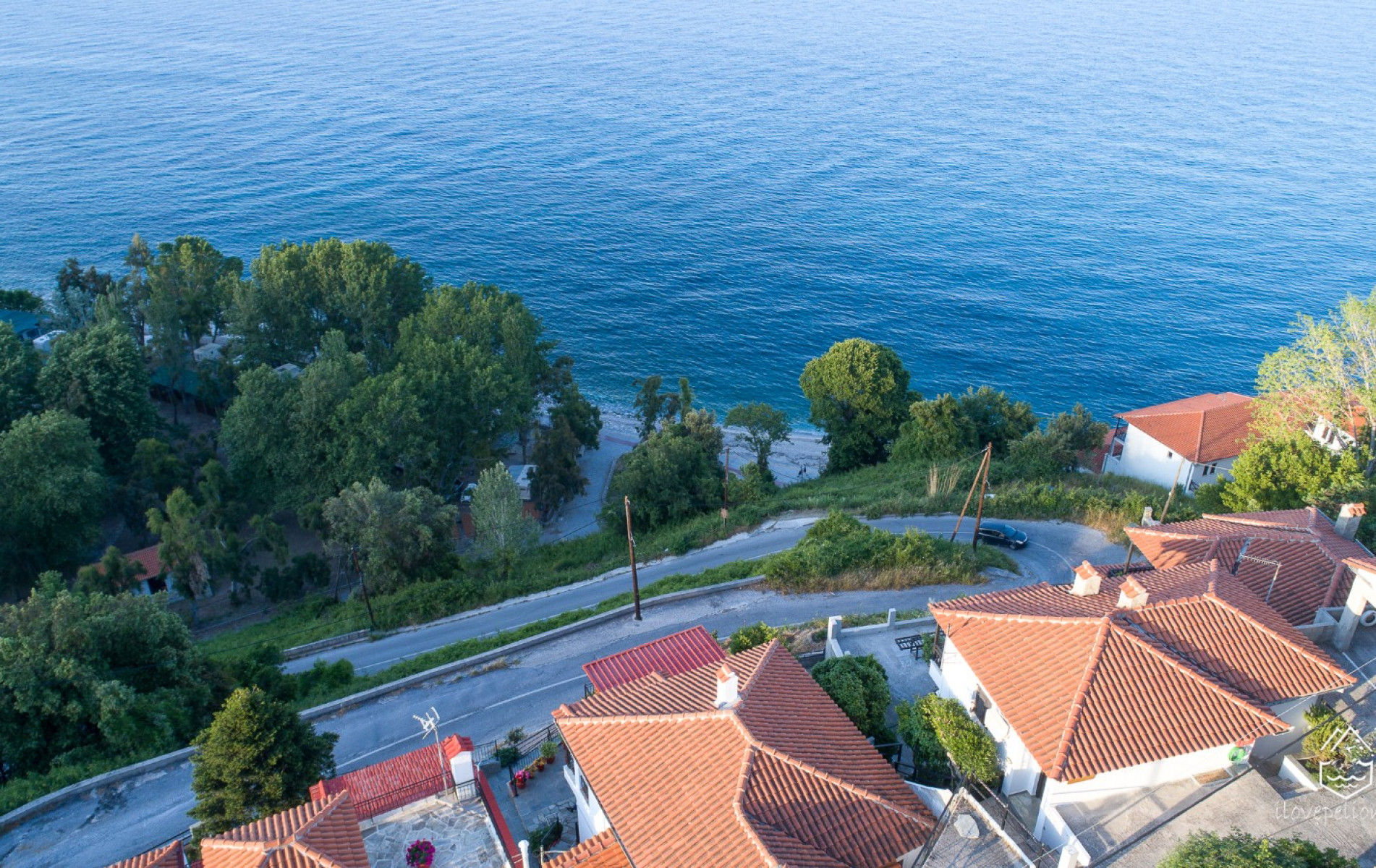 Το συγκρότημα «ΠΑΝΘΕΟΝ» βρίσκεται μόλις 300 μέτρα πάνω από την πανέμορφη παραλία Παπά Νερό, στον Αη-Γιάννη Πηλίου, μέρος ιδανικό για διακοπές, χαλάρωση και ξεκούραση. Αποτελεί ένα μοναδικό συνδυασμό βουνού και θάλασσας, αφού μπροστά στα μάτια του επισκέπτη απλώνεται το «απέραντο γαλάζιο» του Αιγαίου Πελάγους, ενώ προς την παραλία καταλήγουν οι καταπράσινες πλαγιές του κατάφυτου βουνού. Έτσι, ο επισκέπτης έχει την ευκαιρία να επισκεφθεί άλλες παραλίες σε μικρή απόσταση απ’ το συγκρότημα, όπως τη Νταμούχαρη (1χμ), την Πλάκα με τα γαλαζοπράσινα νερά της (1χμ), τους Αγίους Σαράντα (20χμ), τη Φακίστρα και το Μυλοπόταμο (15χμ). Συγχρόνως, μπορεί να απολαύσει το περπάτημα στα γραφικά μονοπάτια του βουνού ανάμεσα σε πλατάνια, καστανιές, οπωροφόρα δέντρα αλλά και το θρόισμα των φύλλων και το κελάηδημα των πουλιών! Στο Πήλιο των Κενταύρων, τον επί της γης παράδεισο, ο επισκέπτης μπορεί να απολαύσει γαλήνη στο πνεύμα και στην ψυχή.